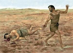 “有一日,该隐拿地里的出产为供物献给雅伟;亚伯也将他羊群中头生的和羊的脂油献上。雅伟看中了亚伯和他的供物,只是看不中该隐和他的供物。该隐就大大地发怒,变了脸色。雅伟对该隐说:‘你为什么发怒呢?你为什么变了脸色呢?你若行得好,岂不蒙悦纳?你若行得不好,罪就伏在门前。它必恋慕你,你却要制伏它。”