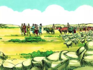 “凡你所看见的一切地,我都要赐给你和你的后裔,直到永远。我也要使你的后裔如同地上的尘沙那样多,人若能数算地上的尘沙,才能数算你的后裔。”