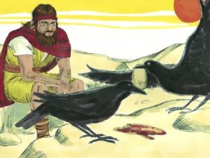 旱灾日趋严重,亚哈只好四处寻找以利亚,希望他能收回靠神的大能说出的话。但神已经预先指示以利亚藏在约旦河东边的基立溪旁,使他们无法寻见他。亚哈派出信使去周边的国家寻找以利亚,都无功而返。以利亚住在基立溪旁,神差派乌鸦喂养他,他也喝基立溪的水直到枯干为止。
