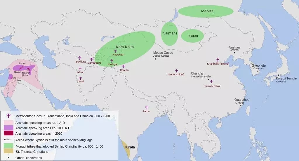 但随着穆斯林统治者的个人喜好变化,基督教的地位和待遇就经常起起伏伏。聂斯托利派也做出一个重大的决定,逐步放弃城市的教区人口争夺战,向着东方的非城市化地区推进。这样一来,大批说波斯语和粟特语的教士,就轻车熟路的进入突厥语占优势的草原地带。很多突厥化部落开始改宗聂斯托利信仰,还连带影响了日后的蒙古帝国。除了早期的部分回鹘人外,大名鼎鼎的乃蛮部落,就信仰基督教东方派。住在他们边上的克烈部落也是如此。