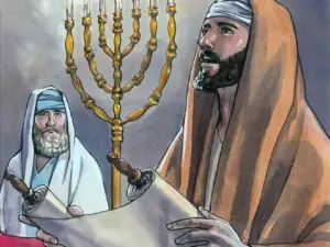 35耶稣在殿里教训人,就问他们说:“文士怎么说基督是大卫的子孙呢?36大卫被圣灵感动说:‘主对我主说,你坐在我的右边,等我使你仇敌作你的脚凳。’37大卫既自己称他为主,他怎么又是大卫的子孙呢?”众人都喜欢听他。(马可福音12章35-37节)